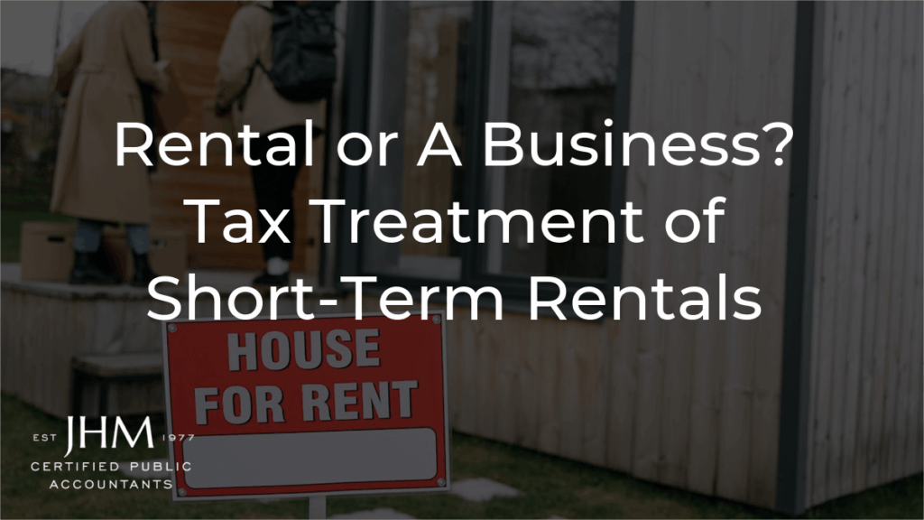 Rental or A Business? Tax Treatment of Short-Term Rentals